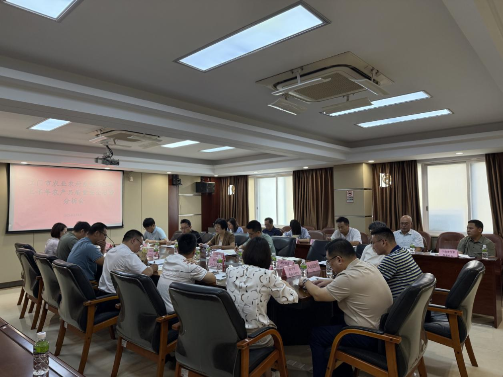 会议传达了2025年上半年全省农产品质量安全形势会商会会议精神,分析了2025年上半年江门市农产品质量安全检测情况。江海区农业农村和水利局、鹤山市农业农村局分别汇报了2025年上半年农产品质量安全监管工作,重点分析了存在问题。