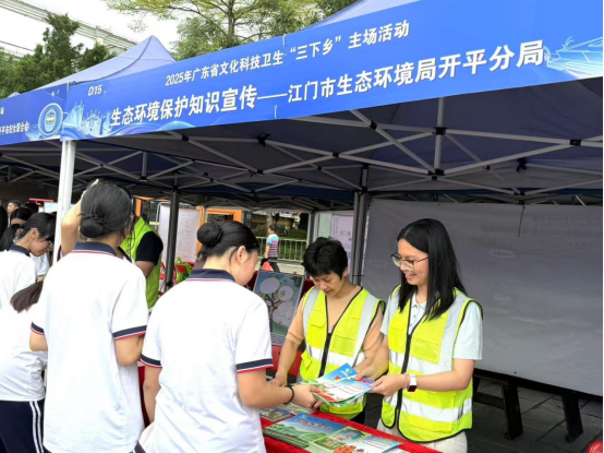 3月28日,2025年广东省文化科技卫生“三下乡”主场活动在开平举行。为深入推进生态文明建设,助力乡村生态振兴,江门市生态环境局开平分局积极响应活动号召,组织环保志愿服务队在现场开展生态环境宣传服务,为“百县千镇万村高质量发展工程”注入绿色动能。