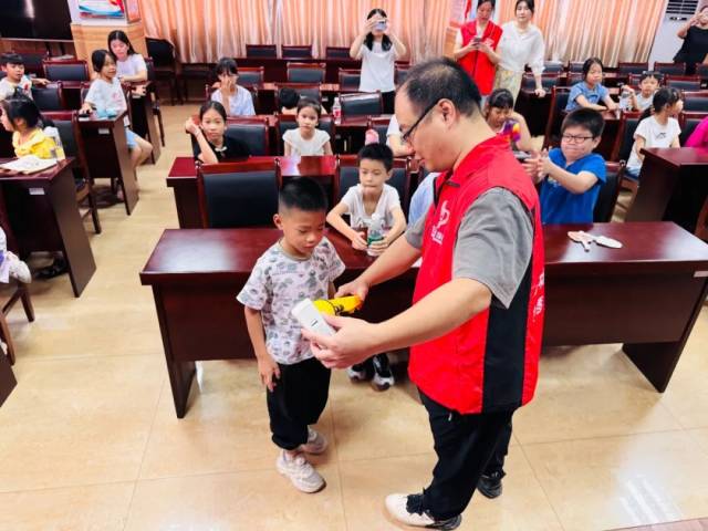 活动一开始,现场就飘来阵阵清脆的鸟鸣、潺潺的溪流声,还有各种灵动的动物叫声 —— 哇,这是把大自然 “搬” 到现场啦!“小朋友们,你们听到了哪些动物的声音呀?” 江门市图书馆的文化志愿者伍天慧老师刚开口,孩子们的小手就 “唰” 地举成了一片小树林,“有小鸟!”“是牛!”“还有老虎!”“狮子!”一个个清脆的声音争先恐后地蹦出来,轻松的互动一下子让现场热络起来,气氛像夏天的太阳一样暖洋洋的。孩子们的小眼睛瞪得圆圆的,注意力完全被吸引住,仿佛真的闯进了生机勃勃的大自然里,满眼都是藏不住的好奇与欢喜。