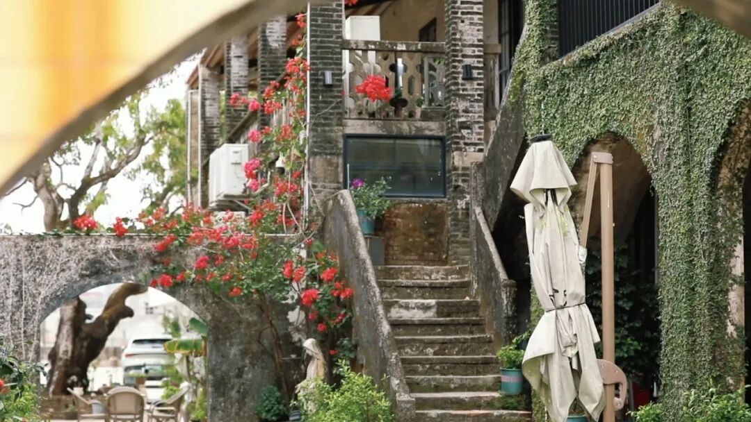 古朴的青砖墙爬满翠绿藤蔓,