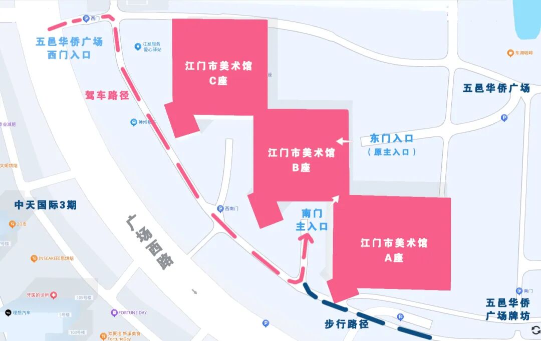 此前,不少市民呼吁更便捷的入口选择。为回应这一需求,江门市美术馆全新开放南门主入口。今后,无论您从周边街道漫步而来,还是自驾、搭乘公共交通抵达,均可由南门直接入馆,更快捷地畅游艺术天地。