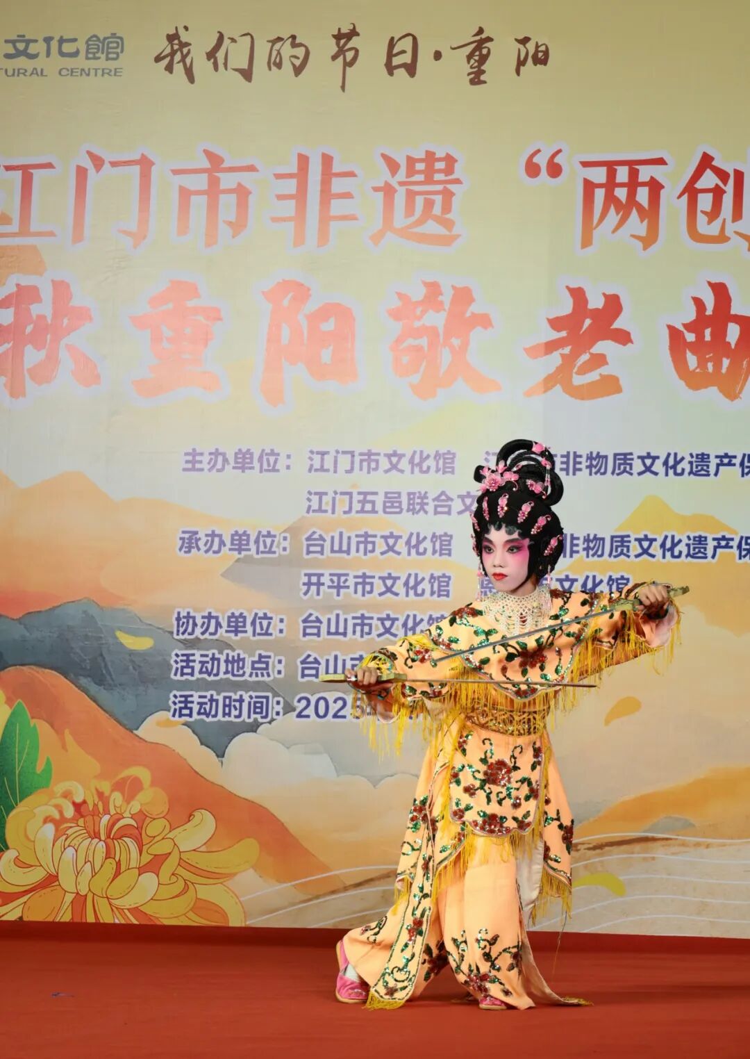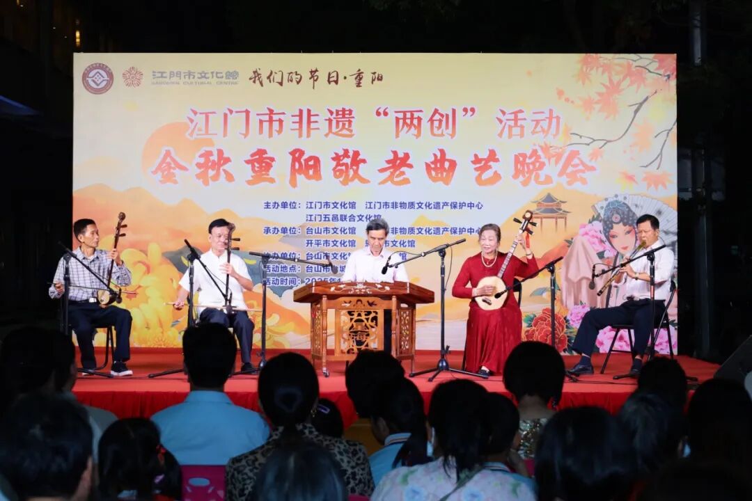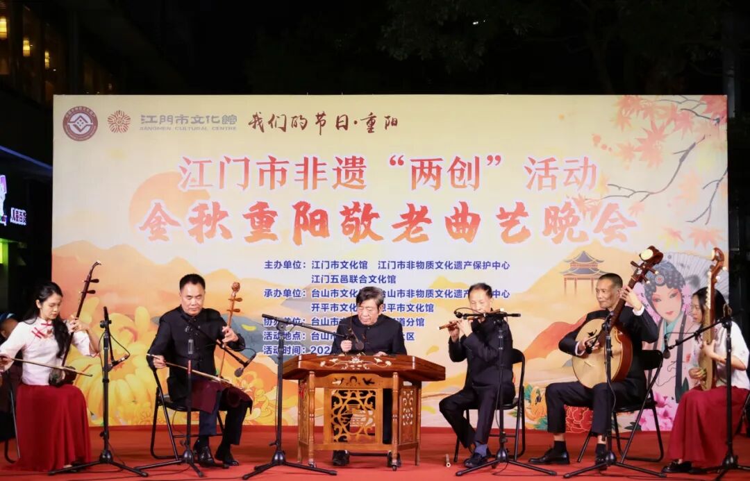 本次活动由江门市文化馆、江门市非物质文化遗产保护中心、江门五邑联合文化馆主办,台山市文化馆、台山市非物质文化遗产保护中心、开平市文化馆、恩平市文化馆承办,台山市文化馆台城街道分馆协办,旨在以曲艺为载体传递敬老温情,同时,联合各级、各市区力量持续推动非遗传承与节庆文化融合,让非遗文化在新时代焕发更蓬勃的生命力,助力江门市非遗创造性转化、创新性发展。