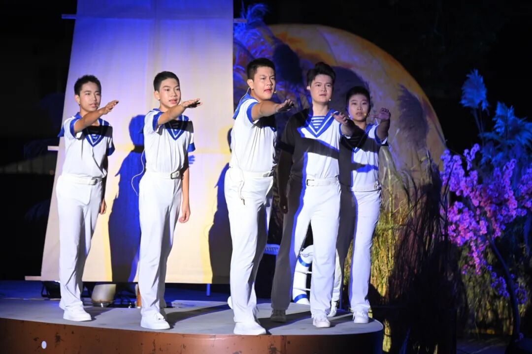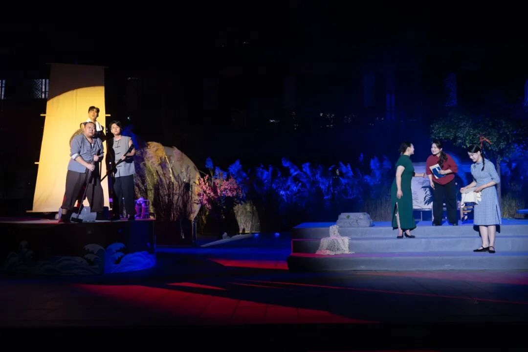 原创作品《归途》将 1950 年太平洋客轮上的三位老华工推至台前:耳背的汤心海紧握新会陈皮,失明的李东号追问潭江水清否,郑进禄撒向大海的恩平乡土,“五十三年,每回月饼只有手指头大”的呢喃字字泣血。演员们以极具代入感的演绎,让侨胞归乡的迫切与艰辛直抵人心。