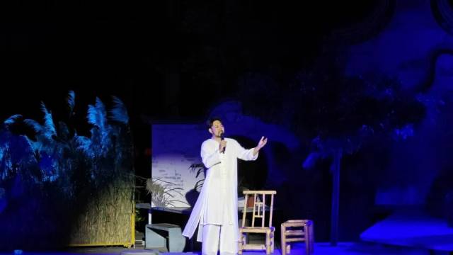 著名朗诵艺术家谢汪洋老师演绎的《河床》,更是将整场氛围推向高潮。他凭借深厚的台词功底,用沉稳而雄浑的声音,借巴颜喀拉山下的河床喻示中华大地的宽厚与雄健。从描绘河床“坚实”时的坚定,到“宽厚”时的舒缓,再到“壮阔” 时的激昂,情绪层次分明、极具感染力,让 “登高” 不仅是物理的攀登,更成为对民族精神的回望与升腾。表演结束后台下掌声雷动,久久不息。