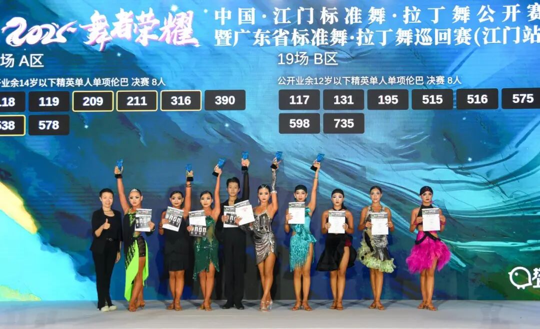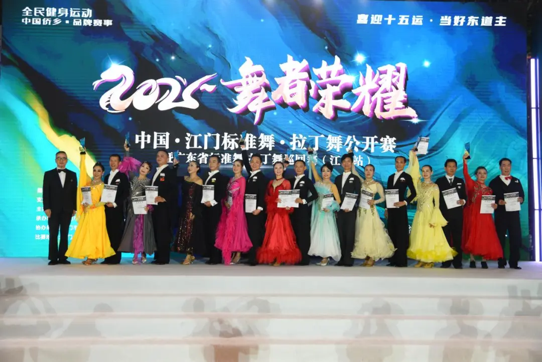 2025“舞者荣耀”中国•江门标准舞•拉丁舞公开赛暨广东省标准舞•拉丁舞巡回赛于11月8日在江门体育馆圆满落幕。本次大赛盛况空前,吸引了来自全国各地的55个代表队、1300人次齐聚侨乡江门,在261个组别中展开激烈角逐,用灵动舞姿为十五运注入鲜活活力、增添绚丽光彩。