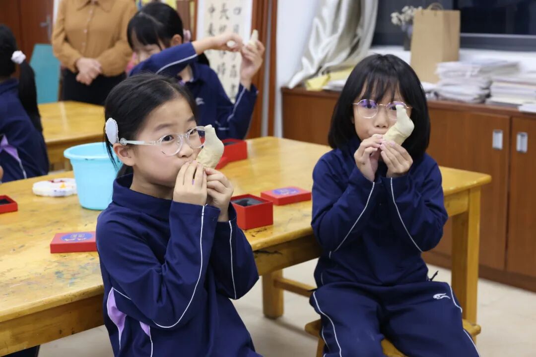 随后,在冯老师的指导下,大家进行镇濠泥鸡的制作彩绘实操。通过本次活动,碧桂园的师生深入了解镇濠泥鸡制作技艺这项传统文化的知识和内涵,体验传统文化的独特魅力。