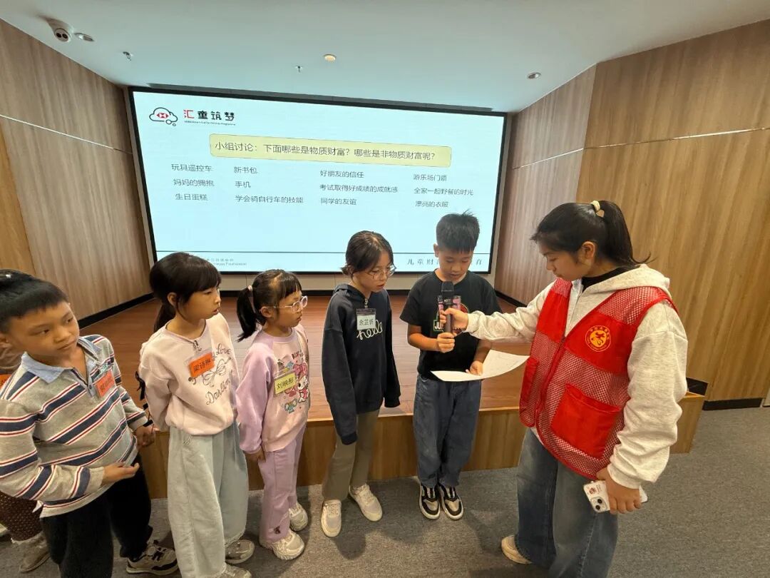 与儿童馆的热闹欢腾形成鲜明映衬,主楼开设2025儿童财经素养教育课堂内,涌动着思维碰撞的活跃氛围。晨光社工中心的讲师以“储蓄-消费-安全-幸福” 四大核心维度为引导方向,为70名儿童开启了一场兼具趣味性与知识性的财富启蒙课程。
