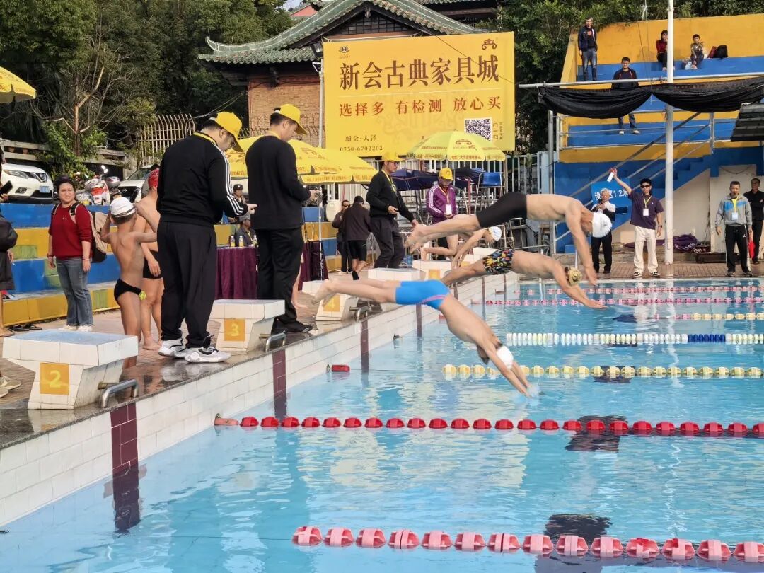 本次比赛由新会区文化广电旅游体育局指导,新会区冬季游泳协会主办,新会古典家具城(组团)承办,广东大有食品股份有限公司支持。赛事涵盖儿童组(6-12岁)至E组(65岁以上)七个年龄组别的比赛,包括自由泳、蛙泳、蝶泳、仰泳等单项及多项接力项目,全方位满足不同年龄段爱好者的参赛需求。本届赛事规模较去年增加80余人,总人数突破300人。参赛选手不仅覆盖全区各镇(街)的本地游泳爱好者,更吸引番禺等地游泳协会组团参与。