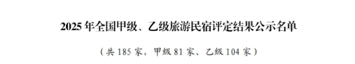 2025年全国甲级、乙级旅游民宿的评定结果