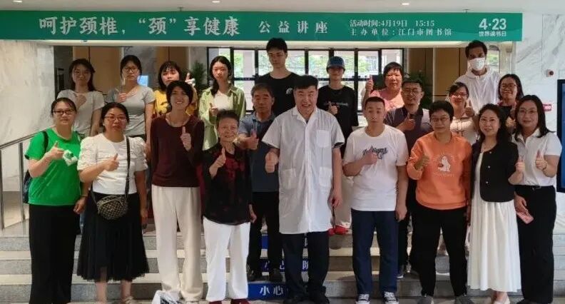 在4.23世界读书日来临之际,为倡导健康阅读理念,提升市民科普意识,江门市图书馆于4月19日成功举办“呵护颈椎,‘颈’享健康”公益讲座。活动以“知识科普+实践体验+阅读赋能”为核心,通过专家讲解、现场义诊、图书推荐等多元形式,吸引众多读者参与。活动反响热烈,市民读者聆听精彩讲座,体验推拿按摩,感受中医文化的独特魅力。