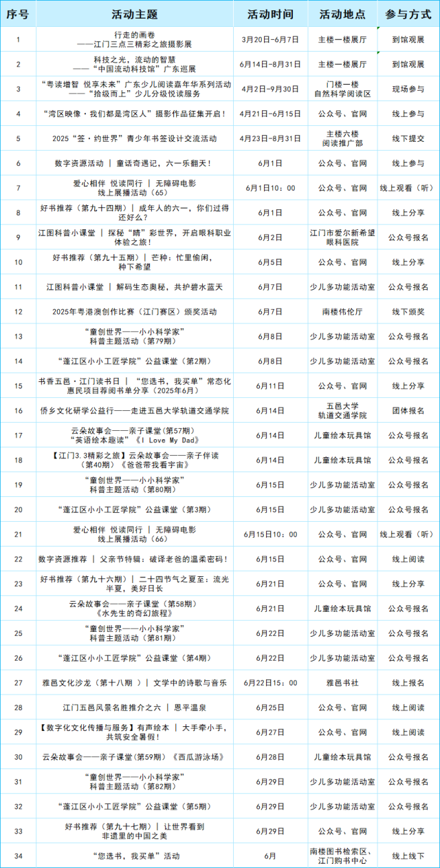 阅读静心 夏日追凉 | 江门市图书馆六月文化活动