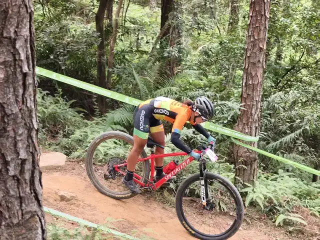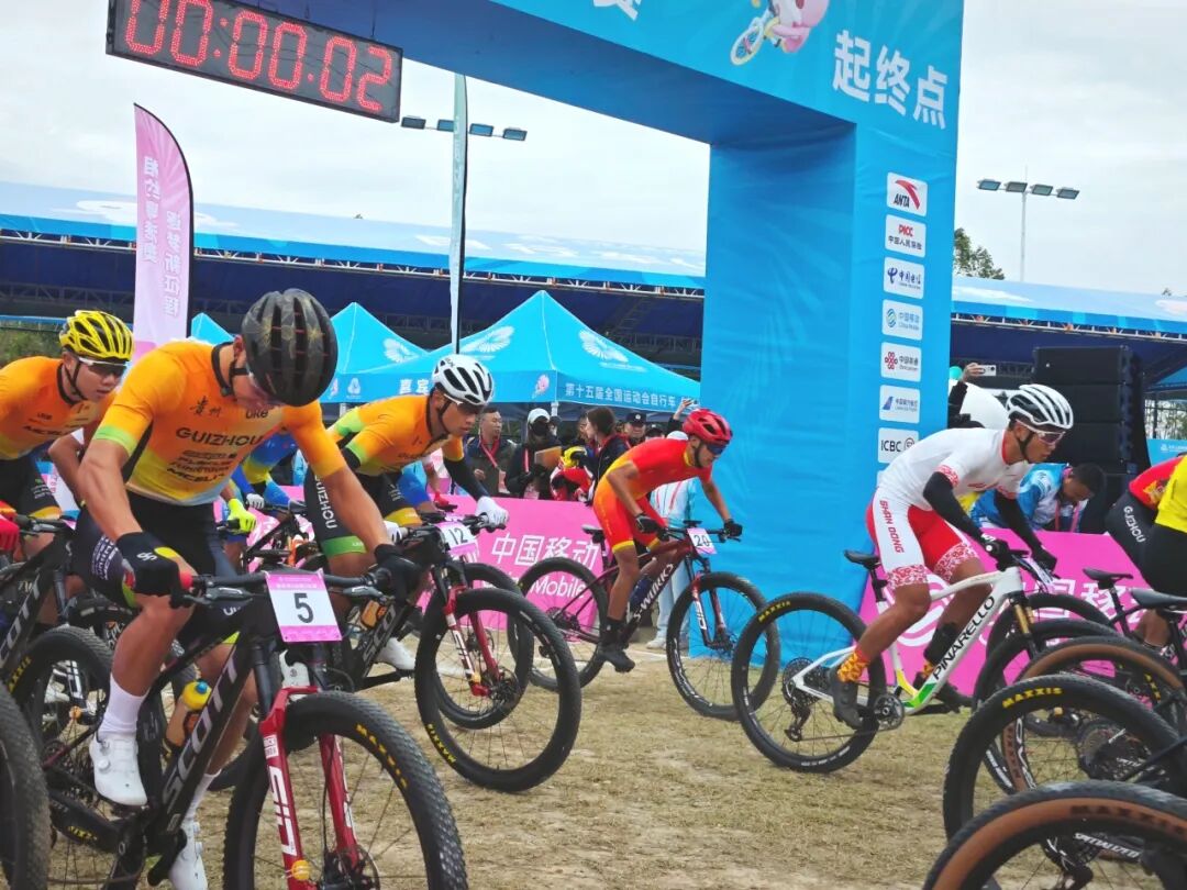 11月20日上午,十五运会自行车(山地)比赛在江门恩平泉林黄金小镇开赛,来自全国15支队伍的58名运动员齐聚岭南山水间,角逐男子、女子越野赛桂冠,在自然画卷中演绎速度与耐力的碰撞。来自云南队的吕先景以1小时22分24秒夺得男子组冠军,云南队的袁金伟、何学辉分别获得男子组亚军和季军。来自江苏队的魏钱钱以1小时22分25秒夺得女子组冠军,云南队的伍志帆、梁正兰分别获得女子组亚军和季军。