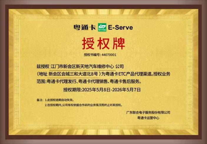 社会代理点仅限于授权代理点,可办理粤通卡发行、销售及售后服务。江门地区粤通卡社会代理点为江门市新会区新天地汽车维修中心公司,地址:新会区会城三和大道北8号。