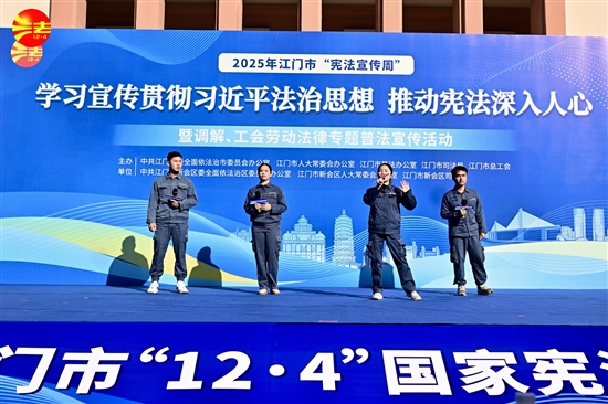 江门市2025年“国家宪法日”普法宣传活动在新会人民会堂前广场举行。