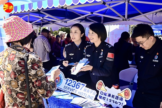 志愿者现场向群众进行普法宣传。