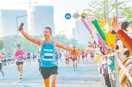 “天气晴朗,江边的风一吹,跑起来特别舒服。”谈起这次马拉松体验,清华大学校友何世骈对赛事组织赞不绝口,“每3公里就有1个补给点,完全不用担心体力跟不上。”最终,他以5分多一点的配速、1小时50分的成绩完赛。赛道沿途的风光让他印象深刻,宜人的江景让选手们心情舒畅。此次他与多位深圳的朋友一同前来,前半程陪着跑全马的同学稳步前行,后半程则按照自己的节奏,独自向终点冲刺。