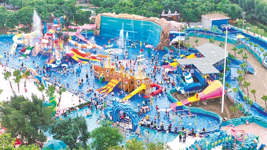 江海区长廊生态园水上乐园游客众多,“热度”十足。景区供图